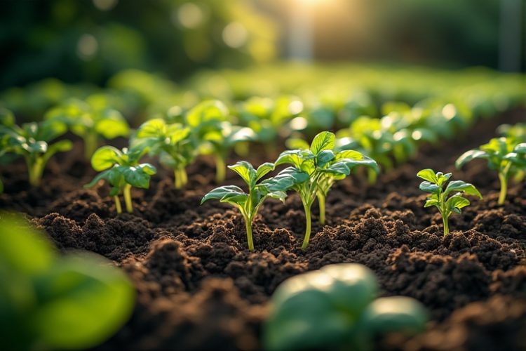 After seeds sprout and seedlings are a few inches tall, apply mulch around plants. Mulch regulates soil temperature, conserves moisture, and suppresses weeds. Use 2-3 inches of organic mulch like straw, shredded leaves, or wood chips, keeping mulch a few inches away from stems to prevent rot.